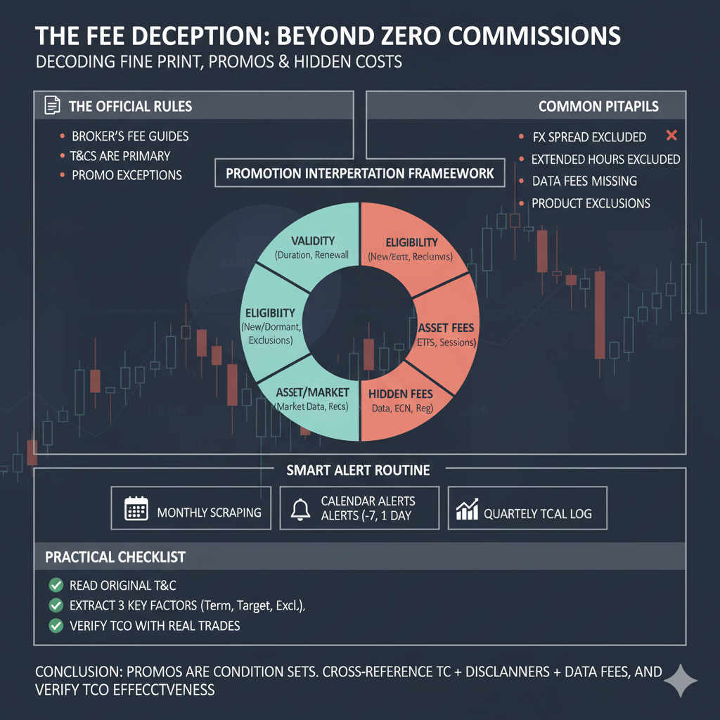 프로모션은 혜택이 아니라 조건의 집합입니다. 수수료안내 원문+이벤트 유의사항+데이터 요금을 동시에 확인하고, TCO 로그로 실효성을 검증하세요.