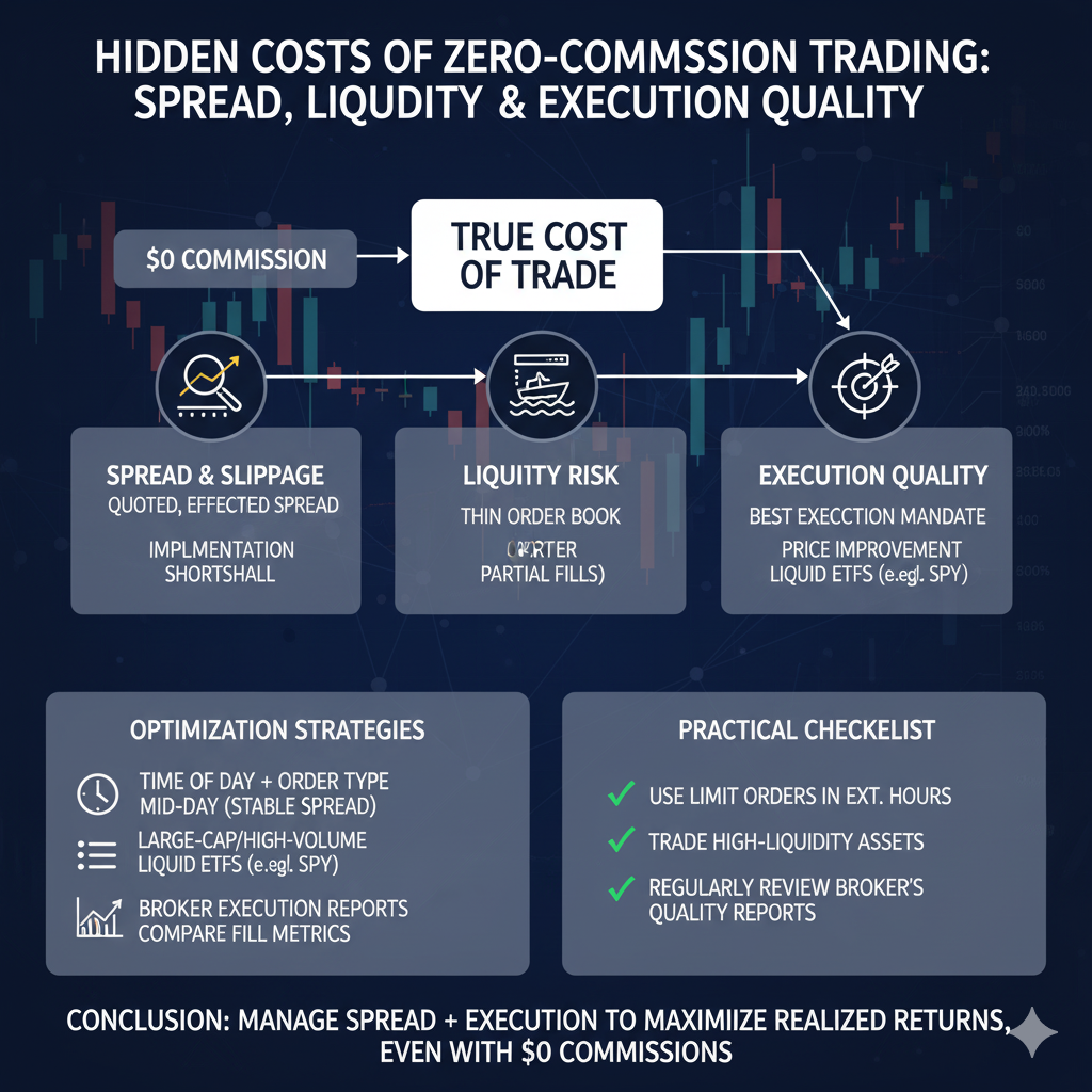 스프레드·유동성·체결 품질은 측정·관리 가능한 비용입니다. 시간대·주문유형·종목선정을 최적화하고 실행 품질 데이터를 비교하면, 커미션 0 시대에도 체감 수익률 격차를 만들 수 있습니다.